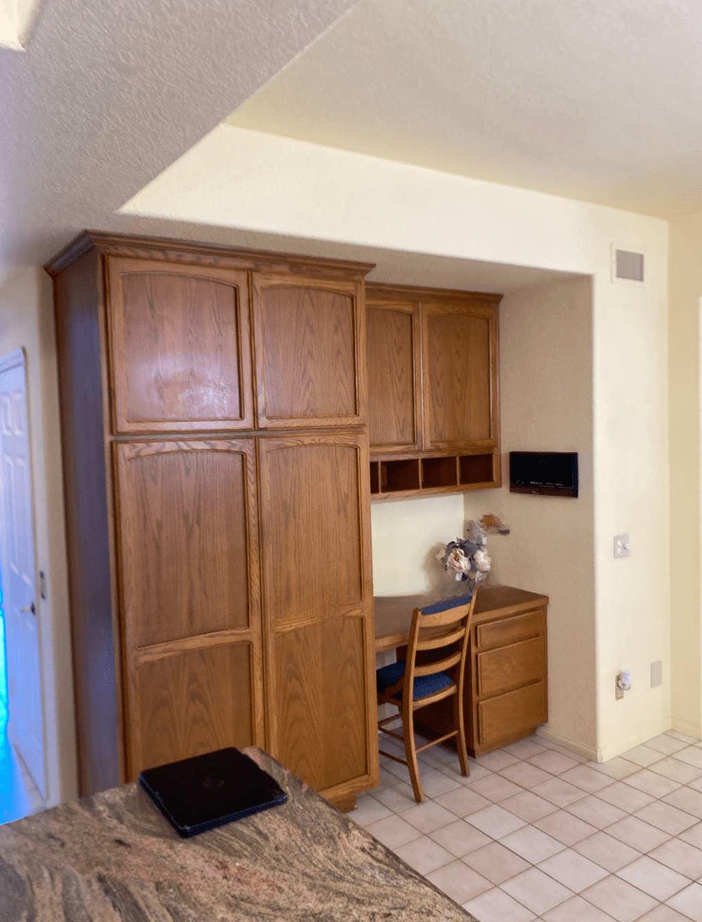 A dated 90’s style kitchen was transformed into a modern culinary space. Our team installed a custom walk-in pantry, a double oven cabinet, and a custom fabricated stove hood. We also added a spacious island, perfect for both food preparation and socializing, making it the heart of this beautiful kitchen.